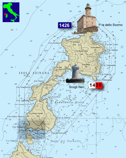 Passaggio Fornelli1430 - Fanale Scoglio Neri 1426 - Faro dell'Asinara