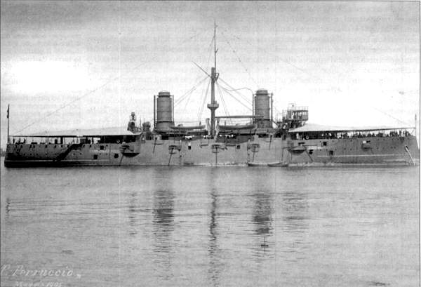 Apparteneva alla classe Giuseppe Garibaldi. Progettato Generale Masdea su indirizzo dell'Ispettore del Genio Navale Benedetto Brin, risultò un'eccellente unità sia per progetto sia per costruzione. Esemplari della stessa classe furono acquistate da diverse marine straniere. Operò efficacemente durante la guerra italo-turca nelle acque della Libia, dell'Egeo e del Levante. Il 24 febbraio 1912, insieme alla gemella Giuseppe Garibaldi, affondò la cannoniera turca Avnillah al largo di Beirut.