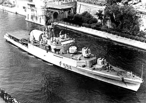 Apparteneva alla classe Luigi Rizzo. Le unità di questa classe, dopo essere state inizialmente classificate come corvette veloci, sono state le prime unità scorta al mondo ad avere attrezzature per l'imbarco e il ricovero di elicotteri antisom. L'artiglieria è stata successivamente ridotta di un pezzo da 76/62 per poter permettere il prolungamento del ponte di volo.