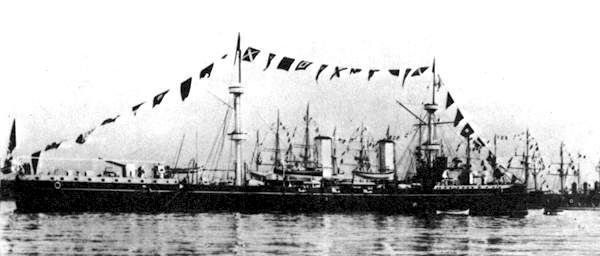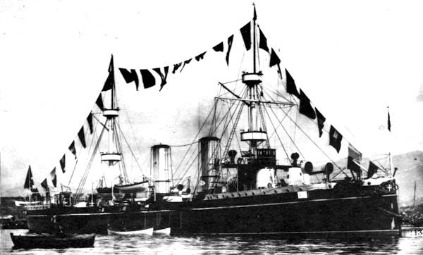 Giunto  in Italia nell'ottobre del 1889 fu assegnato a compiti di squadra. Nel luglio del 1894 fu dislocato in Mar Rosso e, successivamente in Oceano Indiano per una campagna coloniale; da questo momento operò esclusivamente oltremare. Dall'agosto 1898 al gennaio 1900 effettuò una crociera intorno al mondo e poi altre lunghe crociere sopratutto nei mari dell'Africa e nell'Estremo Oriente. Tornò in patria per partecipare alla guerra italo-turca operando inizialmente in appoggio agli sbarchi in Libia e, successivamente, in Mar Rosso, partecipando, tra le altre cose, allo scontro di Kunfida.